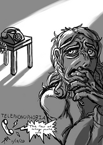 Before beginning anything, I needed to choose a phobia that I would represent, that of which was telephonophobia. Knowing that telephonophobia is the fear of taking phone calls, I made the telephone the center of focus as it is the source of fear, aiming to make it feel ominous and menacing. Since this was originally meant to be a photography project, I got a close friend to get their own vintage telephones for me to use for my photos (as seen on the right). However, as I created my sketches for what I wished to recreate as photos, once my teachers and classmates saw my sketches, they all decided that my execution was effective enough as an illustration that I had no need to do any photography. I created three main variations of my illustration, each being originally shaded in grayscale but also had some color variations, along with some lighting variations such as flame-like lighting.